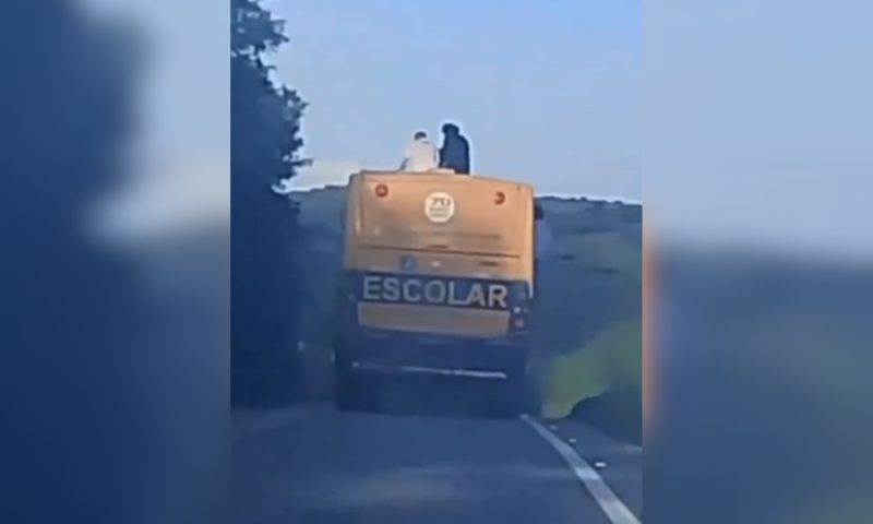 Alunos são flagrados sentados no teto e na janela de ônibus escolar no Ceará