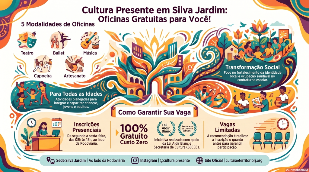 Você já pensou em aprender uma nova arte, desenvolver um talento escondido ou simplesmente se conectar mais com a cultura da nossa região? O projeto Cultura Presente nos Territórios acaba de desembarcar em Silva Jardim, trazendo uma oportunidade única para moradores de todas as idades.