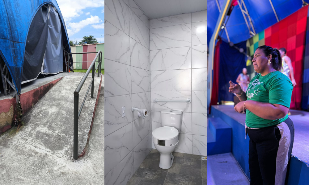 O Lona na Lua conta com rampas de acesso e banheiros adaptados, obedecendo às leis de acessibilidade vigentes. Na cidade de Tanguá, não é diferente. Inaugurado em dezembro de 2021, cada detalhe do espaço foi pensado para que pessoas com mobilidade reduzida possam circular com autonomia e segurança, reforçando o compromisso do coletivo com o respeito e a igualdade de oportunidades.